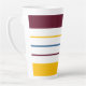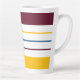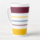 This modern latte mug features a colourful autumnal pattern in mulberry purple, amber yellow, and white stripes.