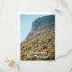 A photograph of Cannon Mountain in the fall. The trees' leaves have turned from green to shades of orange and yellow. These colours blanket the mountain, reaching near the top. The profile of the mountain is the remains of the granite stone, where a prominent face used to be, as he waited and watched for his love to return to him. This fall day has a clear, light-blue sky as the background of the scene. In a white font is a greeting, "Salutations du New Hampshire!" Image Copyright ©2024 Kimberly J Tilley. zazzle.com/store/developingnature