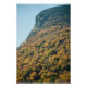 A photograph of Cannon Mountain in the fall. The trees' leaves have turned from green to shades of orange and yellow. These colours blanket the mountain, reaching near the top. The profile of the mountain is the remains of the granite stone where a prominent face used to be. This fall day has a clear, blue sky as the background of the scene. Image Copyright ©2024 Kimberly J Tilley. zazzle.com/store/developingnature
