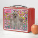This is a standard metal lunchbox that appears to work just fine. We designed this box ourselves with an uploaded photo and custom text on the front and back. It looks absolutely beautiful except the front of the lunchbox is not centered like it shows in the photo. The print borders don't align with the inset flat part of the box where the preview photo online showed it perfectly centered in there. The back looks nice and centered though.
