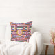This avant-garde throw pillow features a bold arrangement of geometric shapes, colour-blocked circles, and retro-style stripes in a rich palette of pinks, oranges, purples, and greens. Inspired by mid-century modern design and abstract art, it's a vibrant statement piece for eclectic, modern, or artsy interiors.