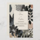 Celebrate your special day with this elegantly modern Avant-Garde Foliage Floral Wedding Invitation. This design combines artistic botanical elements with a sophisticated abstract aesthetic. Muted tones of black, cream, beige, and slate grey create a contemporary yet romantic atmosphere, perfect for couples who appreciate a bold, unconventional style. The layout features hand-drawn floral illustrations layered with organic shapes and textures, offering a fresh take on traditional wedding invites.