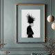 Command attention with this striking black and white art print, a masterful display of avant-garde fashion and artistic minimalism. This captivating portrait features a mysterious figure in profile, adorned with an incredibly dramatic, spiky black headpiece that reaches skyward, creating an unforgettable silhouette. Her look is further enhanced by an intricate, multi-layered black choker, gleaming patent leather-like gloves, and a bold statement earring, all contributing to an aura of sophisticated allure. Set against a pristine white background with subtle shadow play, the high-contrast composition emphasizes the bold forms and textures, making this print a powerful statement piece. Perfect for contemporary interiors, this artwork will add a touch of dark elegance, high fashion, and enigmatic beauty to your living room, bedroom, office, or creative space, appealing to art enthusiasts and fashion connoisseurs alike.