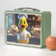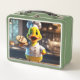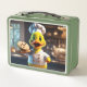 This is a standard metal lunchbox that appears to work just fine. We designed this box ourselves with an uploaded photo and custom text on the front and back. It looks absolutely beautiful except the front of the lunchbox is not centered like it shows in the photo. The print borders don't align with the inset flat part of the box where the preview photo online showed it perfectly centered in there. The back looks nice and centered though.
