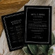 This wedding weekend itinerary template from the Avery Suite features a dark black background, a slim white double frame, and clean sans serif type. It creates a modern, polished look suited to city venues, galleries, and evening weddings.