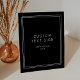 This custom text sign from the Avery Suite features a dark black background, a slim white double frame, and clean sans serif type. It creates a modern, polished look suited to city venues, galleries, and evening weddings.