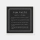 This fun facts napkin from the Avery Suite features a dark black background, a slim white double frame, and clean sans serif type. It creates a modern, polished look suited to city venues, galleries, and evening weddings.