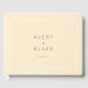 Calm and understated, this guest book from the Avery Suite pairs a butter yellow background with delicate double lines and crisp sans-serif lettering. It sets a clean, timeless tone—perfect for couples who love modern simplicity.
