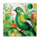 Avian Elegance, Green Abstract Bird On Tree Branch Ceramic Tile