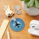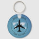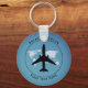 Aviation keychain with an aircraft image on a world map with rustic blue background.