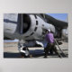 Aviation fuel technician attaches a fuel line to an AV-8B Harrier.