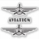 Aviation icon retro style with a geometric illustration of a plane and the word Aviation in a vintage font. Two aeroplane stickers on one sheet.