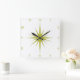 This mid century modern square clock features a bold avocado green starburst and matching numbers, which will make a fantastic addition to the walls of your home or office!