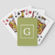 Avocado Green White Framed Initial Monogram Playing Cards