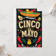 Front and centre on the postcard is a group of happy avocados, each bursting with personality. Some wear party hats, others dance with maracas, and a few rock tiny sunglasses or big, silly smiles. The background comes alive with colourful confetti, chilli peppers, mini tacos, and fiesta banners in vibrant shades of green, red, yellow, and pink. The design is cheerful, modern, and full of movement — just like a real fiesta!