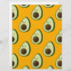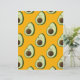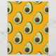 A cartoon style avocado pattern on an orange background.