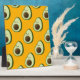 A cartoon style avocado pattern on an orange background.