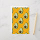A cartoon style avocado pattern on an orange background.