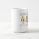 A mug featuring a cartoon illustration of an avocado and a piece of toast with faces. Text says "Avocado + Toast Best Friends."