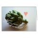 This design has an image of an artichoke and the French phrase "avoir un coeur d'artichaut", to have the heart of an artichoke, meaning they are a hopeless romantic.