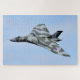 Avro Vulcan B.2 (XH558) is a jet-powered strategic nuclear bomber with a delta-wing design that was used by the Royal Air Force. The aircraft is pictured flying over Marshalls Airfield in Cambridge City, England, and was named "The Spirit of Great Britain." It was delivered to the RAF in July 1960 and retired from service in 1992. The photo was taken by Terence Burke.