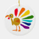 Wonderful artistic unique cartoon turkey ornament design. He's cute and funny and full of personality in a funky primitive art style. A great gift idea. Can also add custom text when ordering. Fun for Thanksgiving too.