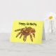 Hilarious cartoon tarantula spider cartoon birthday card says happy birthday on the outside and inside has a web with juicy flies and says Hope you get everything you've dreamed of