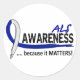 Make a difference in the fight against ALS by delivering the important message of awareness to everyone around you with ALS Awareness Because It Matters t-shirts, apparel, buttons, and gifts featuring a simple design, contrasting text fonts, and a striking blue and white ALS awareness ribbon ‘underlining’ the word AWARENESS.