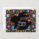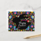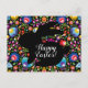 Beautiful inspired by polish Folklore Easter Card with black Bunny on colourful background filled with Wycinanki style flowers. Custom text on front and back side, replace if needed.