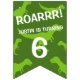 Awesome green dinosaur theme Birthday party Bunting Flags. Fun prehistoric animal design for children. Personalise with name and age. Cool T-rex silhouette print.