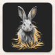 Awesome Grey Rabbit on Fire Square Paper Coaster