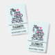 Name badge with a cute and awesome saying. Typography text says: This superhero wears scrubs. Designed with a light blue stethescope and a big pink heart and a pink heart monitor line. A light blue background with faded pink polka dots.