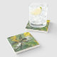 The coasters are gorgeous, a quality feel and heavy weight. They look like a precious archeological find. A rustic stone juxtaposed with a modern floral black and white print. I like the way the print goes slightly imperfect on the cut stone edges giving them a kind-of natural beauty.
