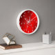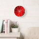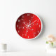 Pretty kitchen wall clock of an elegant red splash colour with vine accents. Twelve white numbers on a blue background.
