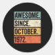 Awesome Since October 1972 Birthday Classic Round Sticker