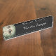 The nameplate looked exactly as pictured, I was very happy with this product! It also arrived promptly after placing my order! I would definitely recommend this product! The printing turned out exactly as I designed it, very pleased!