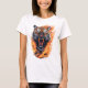 This T-shirt features a stunning, detailed image of a roaring tiger, exuding power and majesty. Behind the tiger there arevibrant flames creating a dramatic and captivating backdrop. The intricate design and vivid colors make this T-shirt a standout piece, perfect for those who appreciate bold and dynamic artwork