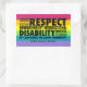 Image is a group of words in black capital letters: autistic acceptance, respect, neurodiversity, intersectional, disability rights, presumption of competence, inclusion, community. Background is rainbow striped.
