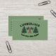 A business card with crossed axes and fir trees illustration on a green background for carpenter, woodworker and lumberjack services (tree removal and pruning, firewood, stump grinding and more). It comes with phone number, full contact and list of services on the back!