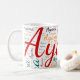 Ayana. Show and wear this popular beautiful female first name designed as colourful wordcloud made of horizontal and vertical cursive hand lettering typography in different sizes and adorable fresh colours. Wear your positive british name or show the world whom you love or adore. Merch with this soft text artwork is a great present, not only in womens history month, or birthday gift.