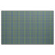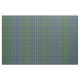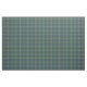 Traditional Scottish plaid pattern in shades of blue and green with bright red and yellow highlights.