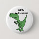 Wonderful funny cartoon t-rex dinosaur button says: COBOL programmer. He's full of personalilty.