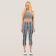 A Blue And Beige Aztec Designed High Waisted Capris Pant Legging For Her Workouts