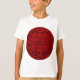 100% cotton so perfect for summer, It is a nicely designed t-shirt, the fabric is soft and the seams finished well, the body of the t shirt has no side seams. I bought a medium size for my two grandsons, aged 9 and 8 it will be slightly big on them but I would rather that than too small