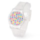 My granddaughter is graduating with her PhD on May 2nd and I can’t wait to give her this beautiful timepiece. Such quality and workmanship. I’m glad I bought the clear because she can wear it with anything. Thanks so much for quality and fast shipping. Excellent. Very bold print