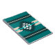 Aztec ethnic bohemian pattern with geometrical shapes in white, beige and turquoise colours on striped background
