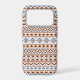 An Aztec style design in a digital and vector pattern with rust/terracotta color and blue detail on a cream background.