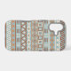 An Aztec influenced style of design in a digital and vector pattern in blue, cream and terracotta colors.