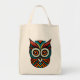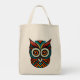 This is a decorative owl made by hand and stylized with Aztec patterns in black, red, turquoise and orange colors.