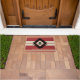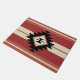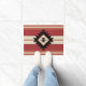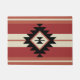 Aztec ethnic bohemian pattern with geometrical shapes in red, orange, grey and black colours on striped background